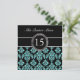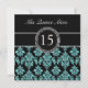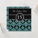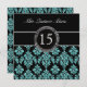 TEAL GLITTER EFFECT BLACK DAMASK QUINCEANERA INVITATION