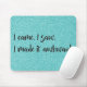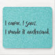 Add an amusing touch to your home office or workspace with a Teal Glitter "I made it awkward" Mousepad. Mousepad design features the text "I came. I saw. I made it awkward." in a handwritten font against a bright glitter teal background. Additional gift items available with this design as well as a variety of colours.