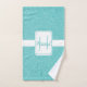 Add a personalized touch to your bath decor with a set of Teal Glitter Personalized Towel Set. Towel set design features a teal glitter background and fancy banner you can add your name and monogram. Additional gift items available with this design as well. Please contact me directly if you need assistance with personalization. Please note, item contains art rendering of glitter and will not contain actual glitter when shipped.