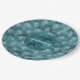 Teal Glitzy Glam Peacock Feathers Paper Plate