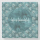 Teal Glitzy Glam Peacock Feathers Stone Coaster