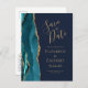 Teal Gold Agate Navy Blue Wedding Save the Date Announcement Postcard
