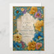 This bold botanical design features richly saturated teal, gold, and blush florals arranged in an ornate vintage frame. The textured parchment background adds an elegant antique feel, giving the layout a timeless and artistic quality. Detailed illustration, vibrant color, and soft shading create a dramatic floral border that beautifully highlights your wedding details. Personalize the wording to craft a luxurious keepsake that reflects your celebration’s unique style.