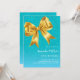 A modern teal and blue faux glitter background, decorated with a large golden bow. Personalize and add a name and party details.