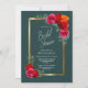 Une élégante invitation à la douche à nuptiale turquoise bordée d'or et bordée de bordeaux.