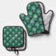 Teal Gold Diamond Tufted Custom Name Personalized Oven Mitt & Pot Holder Set