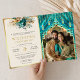 Teal Gold Floral Curtain Indian Hindu Wedding Invitation