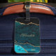 Teal Gold Glitter Agate Personalized Luggage Tag