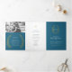 Teal gold monogram wreath story & program wedding Tri-Fold programme