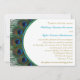 This dramatic teal blue, brown, blue, green, white, and gold wedding invitation has a fan shaped border of peacock feathers and a blue and green accent band. The rich, dark colours of brown, teal blue, green, navy, and purple make it perfect for a fall wedding, or for a peacock wedding theme. All the text is customizable and so is the paper choice. If you require any other items in this same design, please email your request to niteowlstudio@gmail.com. Existing matching items are shown below.