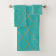 Teal & Gold Quatrefoil Pattern Bath Towel Set