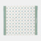 This winter theme fleece blanket features a pretty pattern of teal and gold snowflakes which are placed on a white background.There is a matching solid teal border at top and bottom. The top border holds your name or other text in white script. Festive, and versatile enough to be used beyond the Christmas season. Pattern design credit to https://www.etsy.com/shop/ephrazydesign.