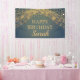Elegant teal with glittering gold string lights and sparkling bokeh "Happy birthday" party banner personalized with the name of the guest of honour.