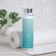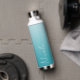 A custom personalized stainless steel water bottle in a modern soft teal gradient design. The trendy handwriting script font adds a unique touch when adding your name.