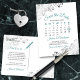 This beautiful save the date postcard will give your friends and family advance notice of your upcoming wedding. It features a clever design with a custom calendar where you can put a heart around your wedding date. The background is white, with teal and gray text and decorative silver gray faux foil frilly accents in the corners. The back has a cute graphic reading "pencil us in" with space for your own custom note.