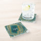 Teal Green Agate Marble Abstract Name Monogram Glass Coaster