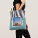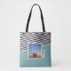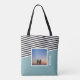 Teal Green and Striped Pattern Personalized Photo Tote Bag