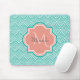 Teal Green Art Deco Fish Scales Pink Monogram Name Mouse Pad