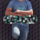 Teal Green Blue Black White Trendy Plaid Pattern Skateboard