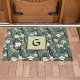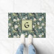 Teal Green Chinoiserie Floral White Initial Doormat