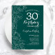 Green Floral 30th Birthday Party Invitation. Minimalist modern design featuring botanical outline drawings accents and typography script font. Simple trendy invite card perfect for a stylish female bday celebration. Can be customized to any age. Printed Zazzle invitations or instant download digital printable template.
