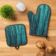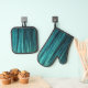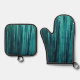 Teal Green Glitzy Glam Tinsel Stripes Oven Mitt & Pot Holder Set