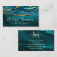 Teal Green Gold Agate Geode Monogram Script Business Card