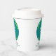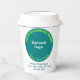 Customizable paper cup for your cafe business. You can put your business name on it. Customize it and use it like a marketing material to advertise your business or to promote your brand name. Build brand name awareness while your customers enjoy sipping the tasty and aromatic coffee that you served to them. Design and colours on the paper cup are yellow green texts on teal green round shape background and dark teal green colour business address and phone number texts. Contents are your business logo, business or company name, city or town, state, address and phone number.