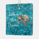 Teal Green Sea Turtle Glitter Ceramic Ornament