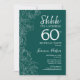 Teal Green Surprise 60th Birthday Invitation. Minimalist modern feminine design features botanical accents and typography script font. Simple floral invite card perfect for a stylish female surprise bday celebration.
