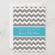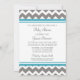 Personalized baby shower invitations in elegant and modern turquoise peacock blue, dark charcoal grey and white fun chevron zigzags pattern. Customizable with your text, contact us to request a colour change.