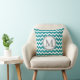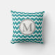 Teal Grey Chevron Monogram Decorative Pillow