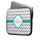 Teal Grey Chevron Pattern & Moroccan Quatrefoil Laptop Sleeve