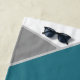 This custom colours volleyball beach towel features the image of a simple, abstractly oversized volleyball that has teal, grey and white panels - personalize with the athlete's name & jersey number -- you can EASILY change the colours on this towel: press the blue "Edit Design" button above to use Zazzle's design tool to change the volleyball's teal & grey panels and text colours to your team's colours or favourite colours - by katz_d_zynes