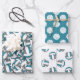 Fun wrapping paper sheets for volleyball players or fans with three unique patterns -- sheet 1 features a 3D look pattern of volleyballs that have teal, grey and white panels - sheet 2 has simple white volleyballs on customizable teal - sheet 3 has a simple pattern of teal, grey and white volleyballs on customizable white - by katz_d_zynes