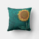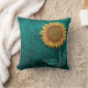 Teal Leather Tooled Yellow Sunflower Throw Pillow