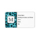 A monogram design with an initial letter to be personalized. This design has a black, teal and turquoise animal print, leopard pattern.