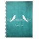 Record your thoughts with a Teal Lovebirds Floral Vine Personalized Notebook. Notebook design features a teal grunge background adorned with a floral vine and a pair of resting birds. Personalize with your own name or create a unique gift for friends or family. Additional items available with this design as well. Please contact me directly for assistance with personalization.