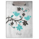 Give an elegant office gift with a Teal Lovebirds Personalized Clipboard. Clipboard design features a pair of lovebirds adorned with a floral vine and area you can personalize with your name. Additional gifts available with this design as well as a variety of colours.