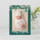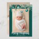 De jolies ornements turquoises avec de belles aquarelles feuilles de vacances pendent sur vos 2 photos de vacances préférées. Elégant Joyeux cartes photos de Noël avec de jolies décorations. Photo verticale à l'avant et horizontale à l'arrière.