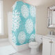 Elegant, stylish and chic, teal and mint green and white colour floral pattern or design for home shower curtains. This modern chrysanthemum pattern will enhance any home decor, bathroom, holiday house or beach house. Perfect home gift for wedding, engagement, birthday or christmas.
