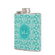 Teal Monogram Damask Flask