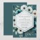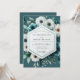 This design features a deep teal backdrop adorned with striking white anemones and cool-toned floral accents. The painterly style creates a moody and sophisticated aesthetic, perfect for a romantic winter event. Delicate green foliage and subtle berries add texture to the lush botanical arrangement. It evokes a sense of ethereal beauty and refined elegance.