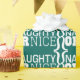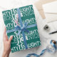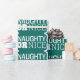 Holiday wrapping paper with white text that reads Naughty or Nice. You can customize the teal background to be any colour you want.