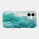 The image shows a close-up view of ocean waves. The water is a gradient of teal and white, with the darker teal at the bottom transitioning to lighter shades and white at the top. The waves are textured and appear to be in motion, creating a dynamic and visually appealing scene. The overall mood is serene and calming, evoking a sense of the ocean's power and beauty.