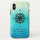 Teal Ombre Sea iPhone XS Max Case. A nautical compass rose to keep your ocean bearings. Enjoy the stylish optical illusion effect of the ombre background. Keep the quote "In the waves of change we find our true direction" or add a name, sentiment, or monogram to customize. Be Custom, Be Unique, Be You in fabulous style!