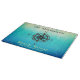 Teal Ombre Sea Nautical Glass Cutting Board. A compass rose to keep your ocean bearings. Enjoy the stylish optical illusion effect with the Teal to blue to turquoise tones of the ombre background. Add your own name, sentiment, greetings, or monogram to customize. Nautical, Tropical, Beach, Coastal style in this design for your kitchen decor.