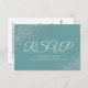 Teal or Turquoise Elegant Silver Lace Wedding RSVP Card