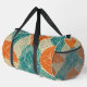 Teal, Orange, and Tan Abstract Flowers Duffle Bag