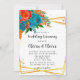 Teal Orange Botanical Florals Gold Wedding Invitation
